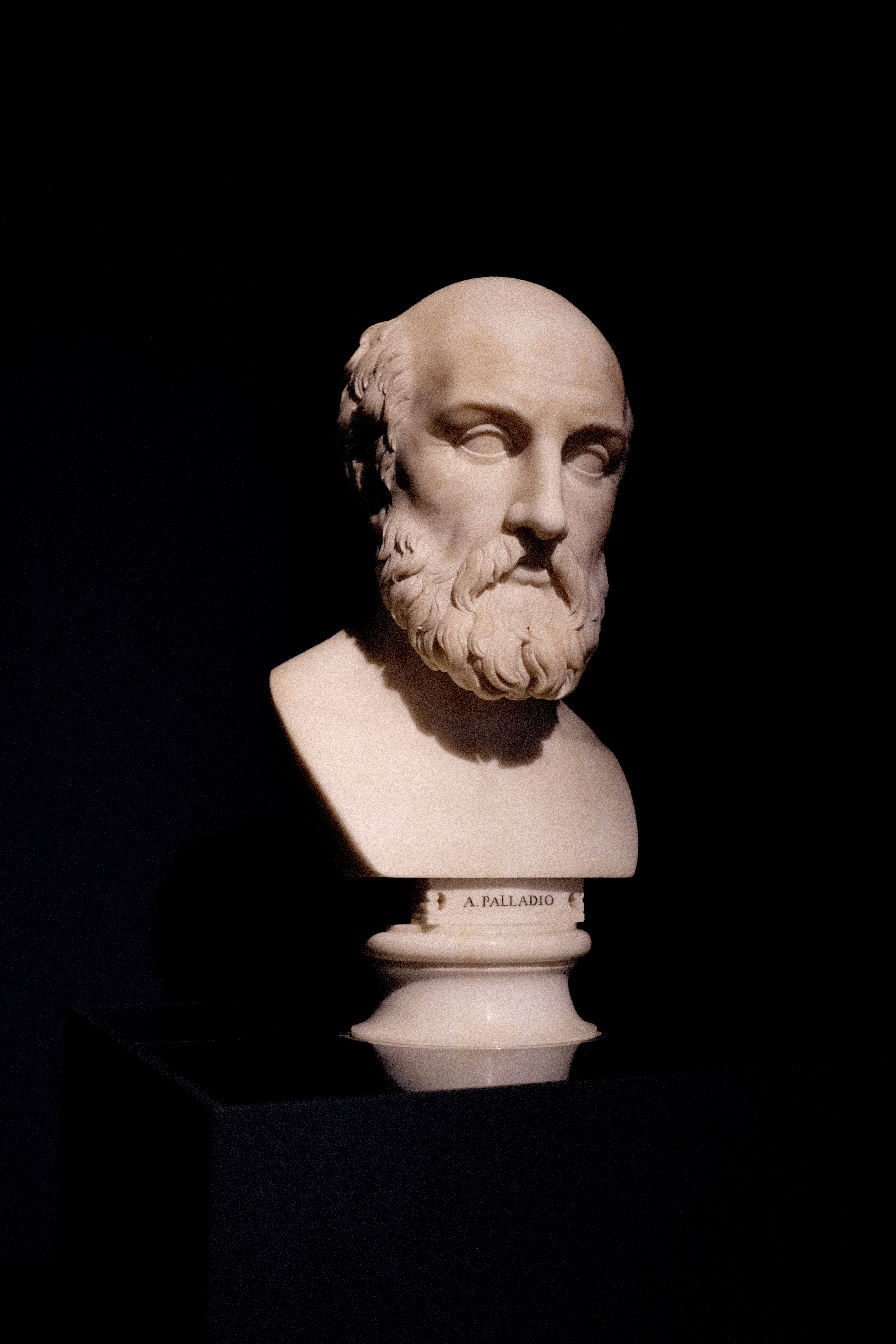 Inside a black-painted niche, you can see a bust of Palladio as an older man and looking every inch the learned and important man.