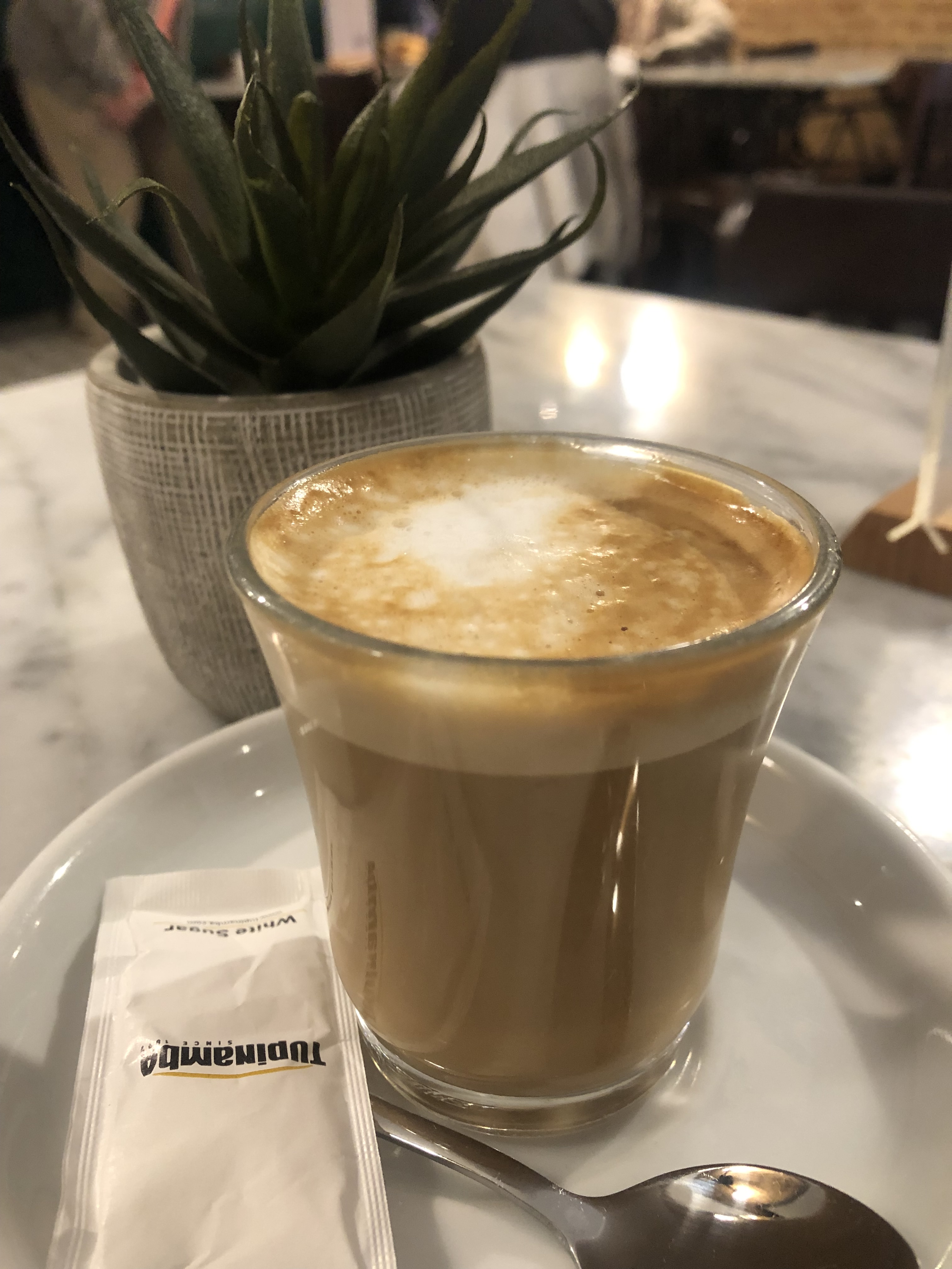 for a local favourite- the cortado. It’s made with half steamed milk and half espresso so you get a strong coffee with a creamy texture and sweetish taste.