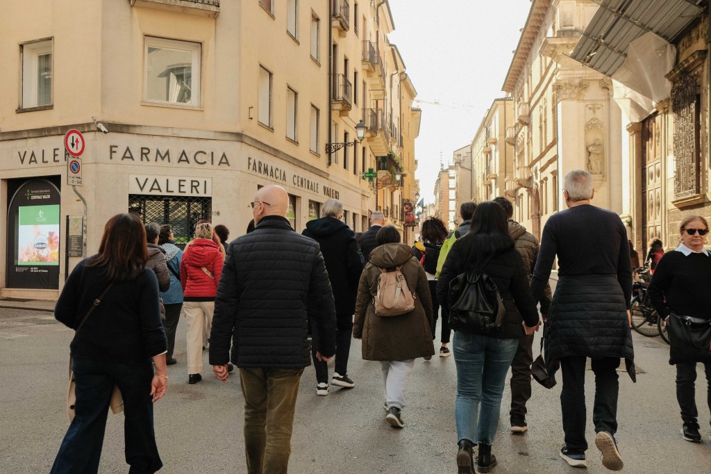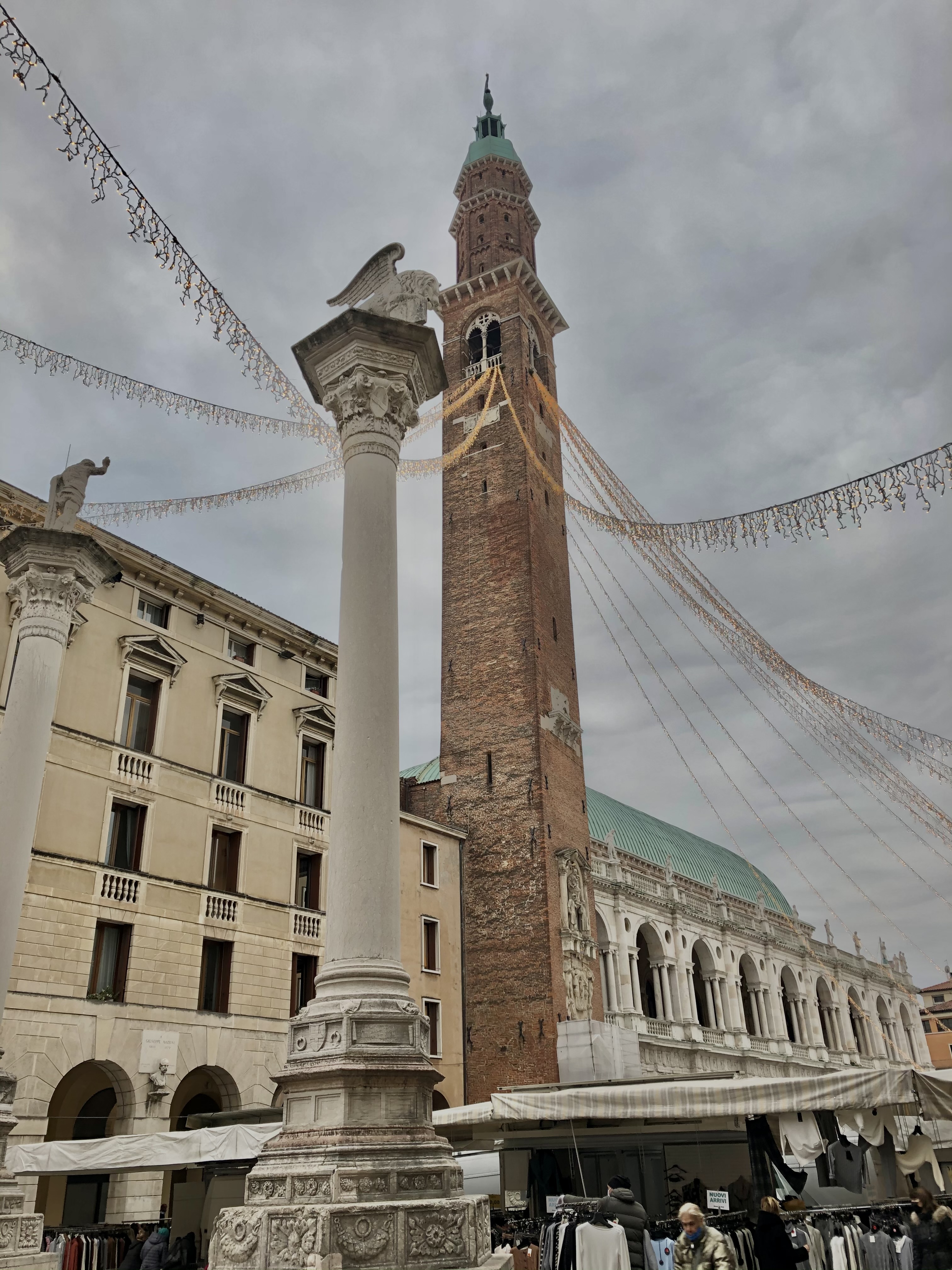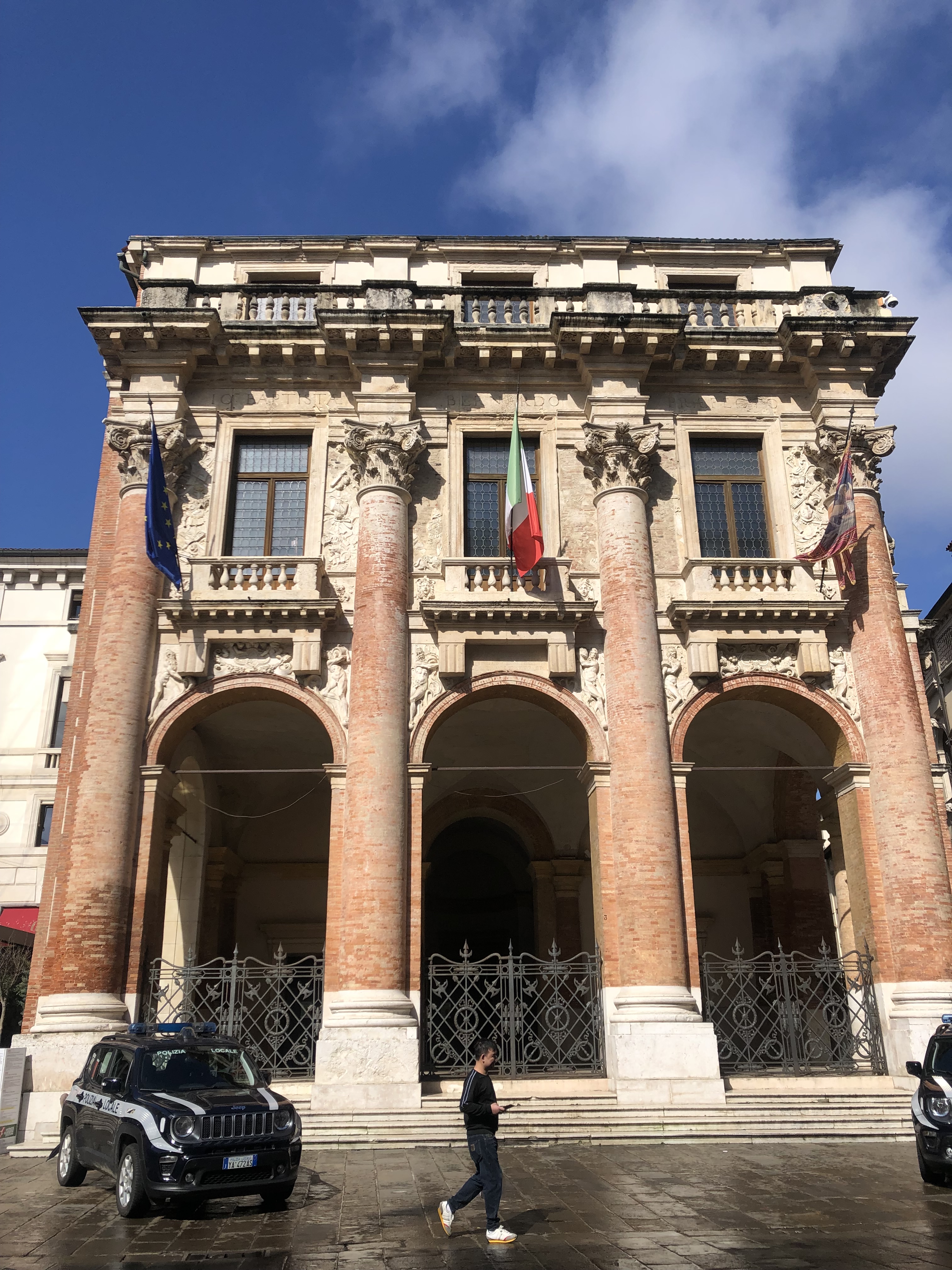At one end there are two columns: at the top of one of them there is the lion of Saint Mark, the patron saint of Venice, while the other column has a statue of Christ the Redeemer, another Venetian symbol. All this because Vicenza was part of the Serenissima, the Venetian Republic, from 1404 to 1797, which wasn’t so bad, they were years of peace, economic prosperity, and the creation of a cultural and artistic legacy for future generations.