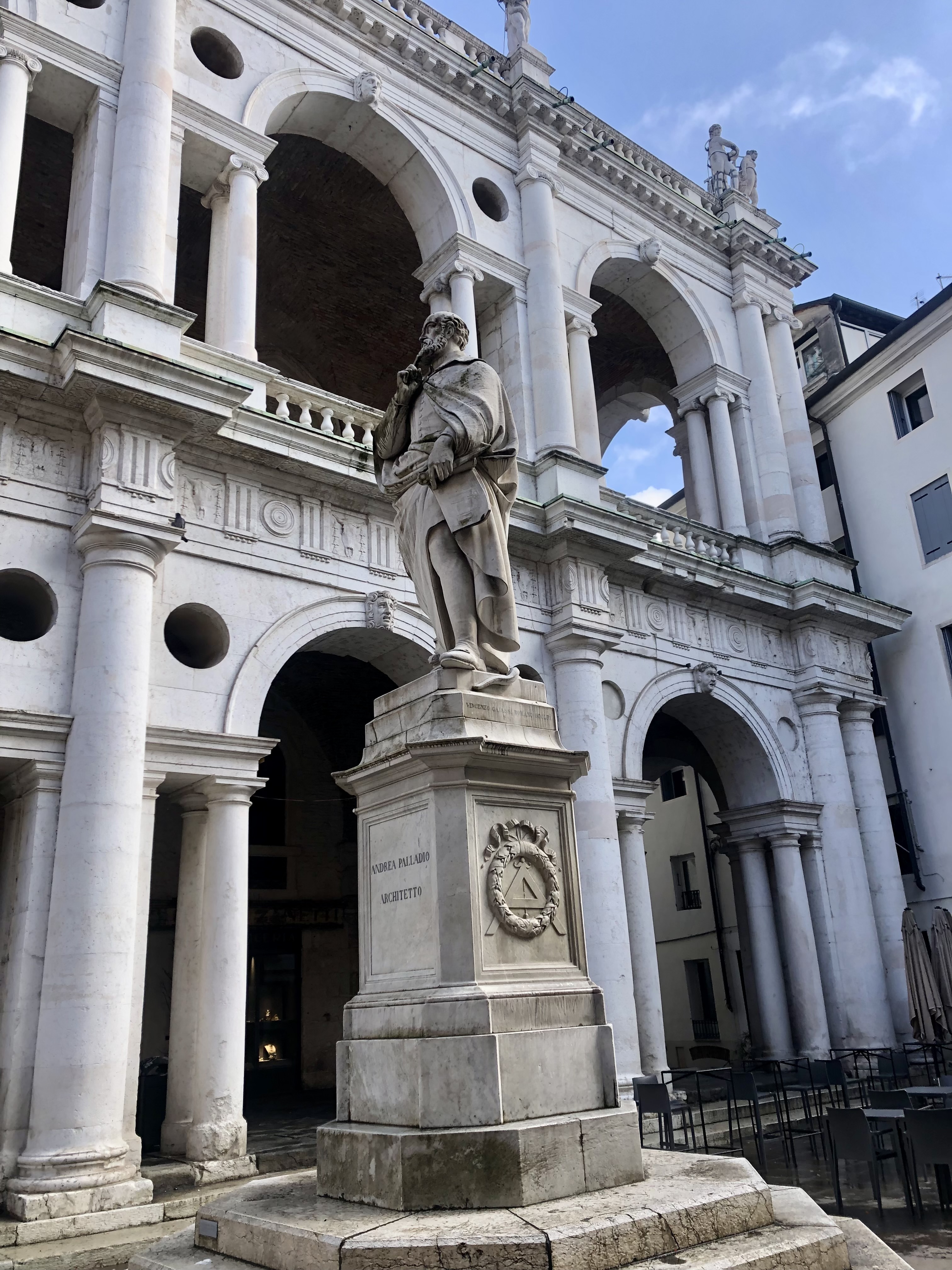 Our first stop is this square dedicated to the star architect of Vicenza: Andrea Palladio. Born in 1508, he went on to transform the city from a medieval town to the Renaissance city that we still get to see today.