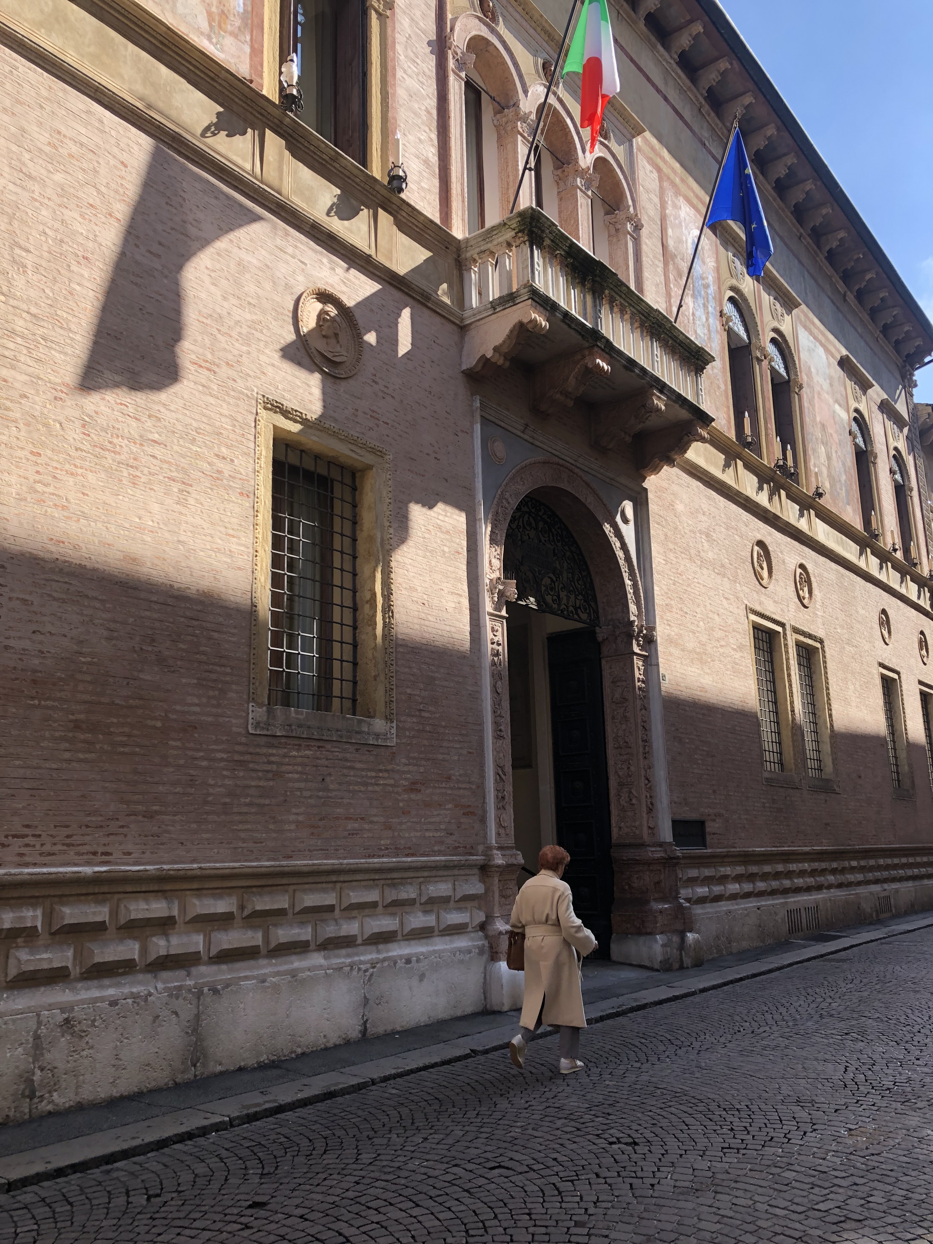 It’s hard to imagine but the area in front of this building where there is a small park and parking spaces now, was once the port of the city. Goods would travel along the Bacchiglione river which flows nearby all the way to the Adriatic Sea.