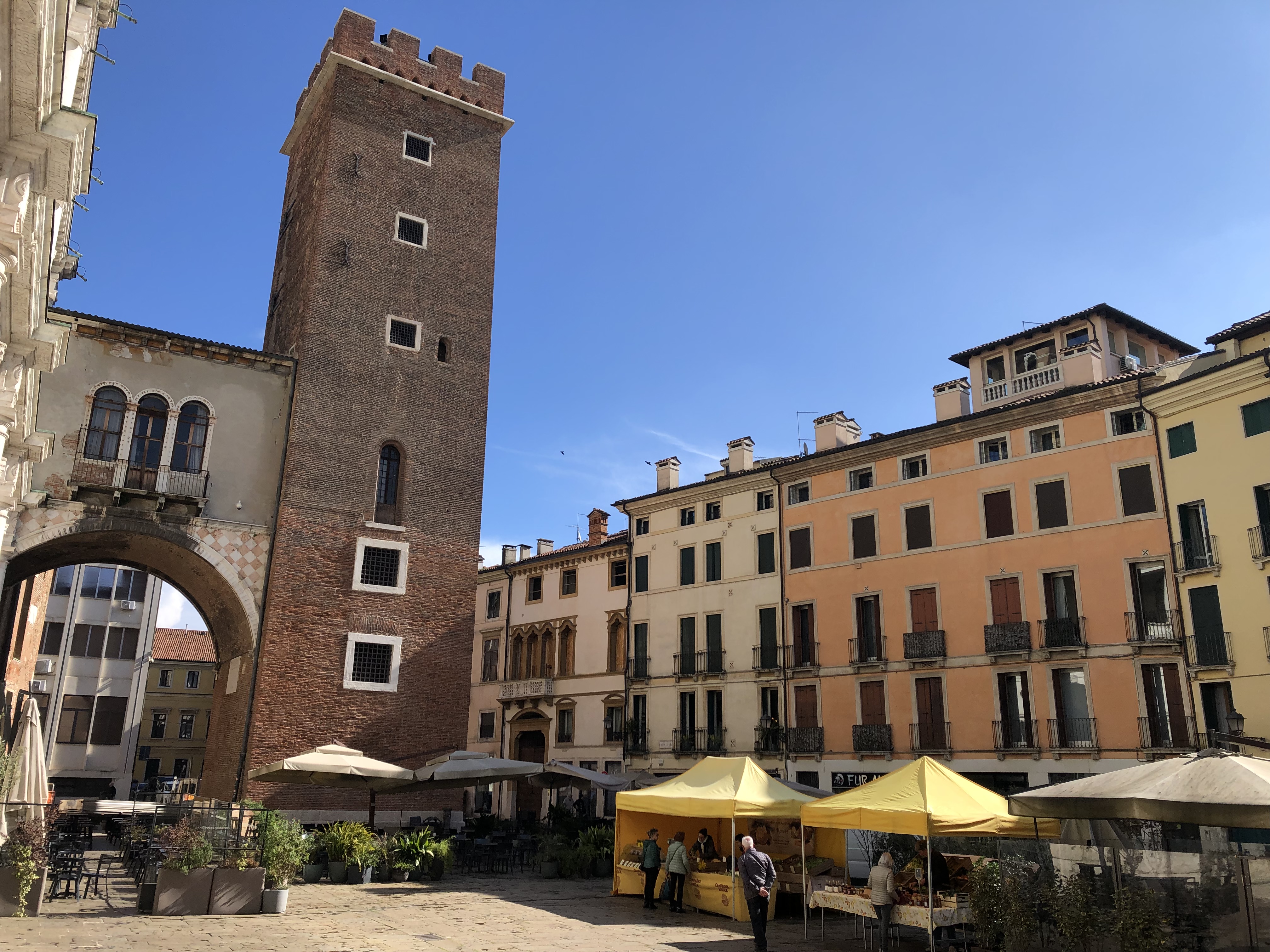 The main square in Vicenza. This place is criss-crossed by locals walking the dog and children running around.