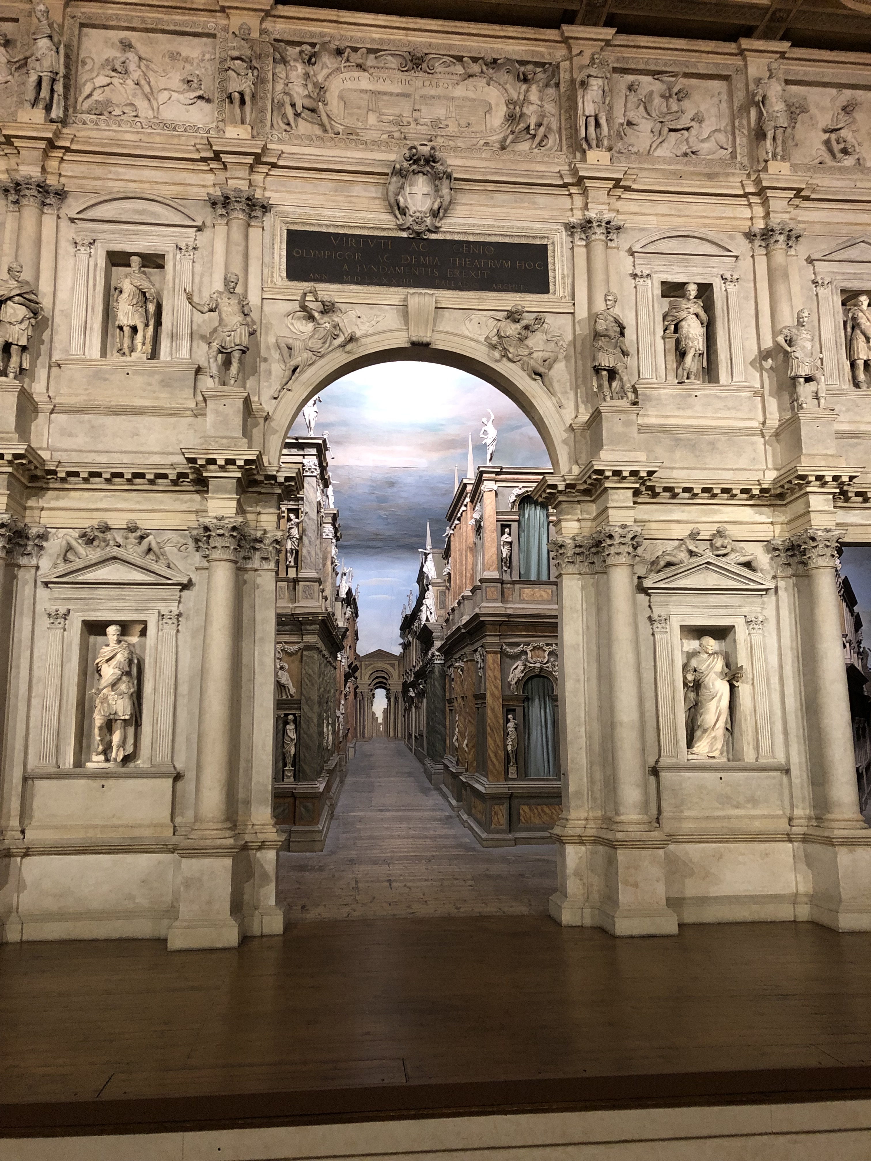 The wooden seats are the same as they were all those years ago and the scenery created by Vincenzo Scamozzi, Palladio’s star student, are still the same: recreating the city of Thebes for performance of Oedipus Rex.