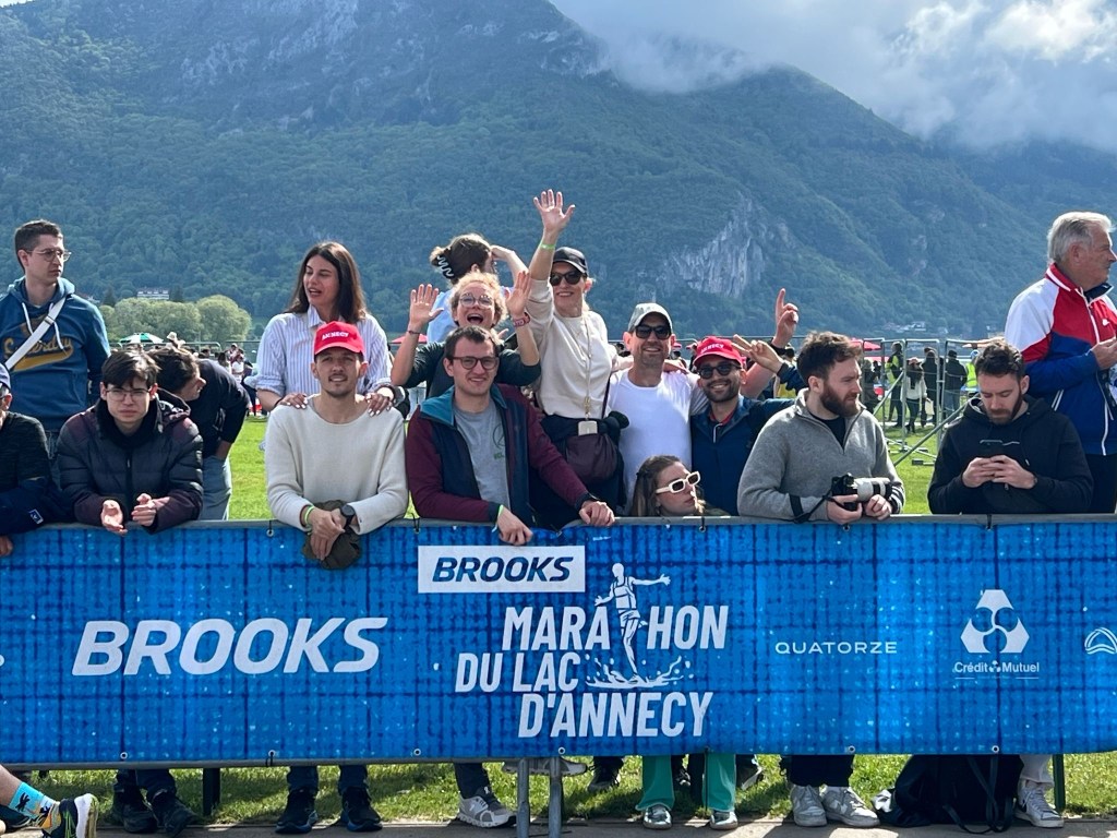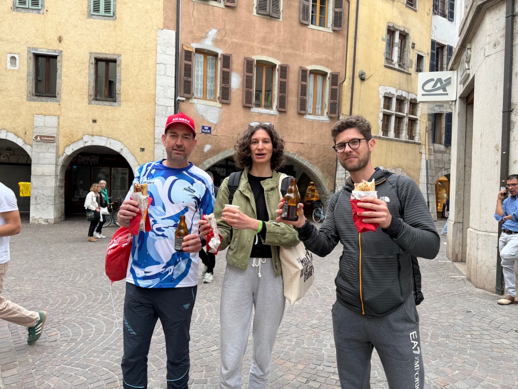 The WAGs and 10km and 42km who were running on Sunday, could take a late breakfast and then arrive in Annecy to cheer on the 21km runners. It was sunny in Annecy, there was a great atmosphere, a cool jazz band was playing in the park and the course was lined with spectators.