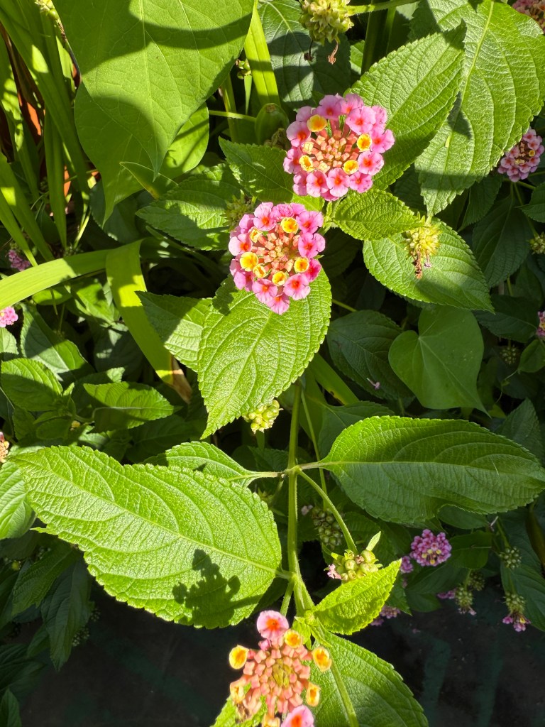 Finally fill in the spaces with smaller plants like the aromatics: mint and lemon verbena.