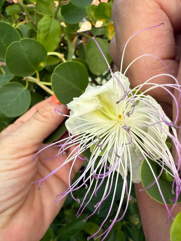 something for the eyes: this gardener recommends choosing one colour scheme or a harmony of colours which work well together. So he has the rich white flowers of the gardenia, frangipani and jasmine. They are the neutrals of the garden.