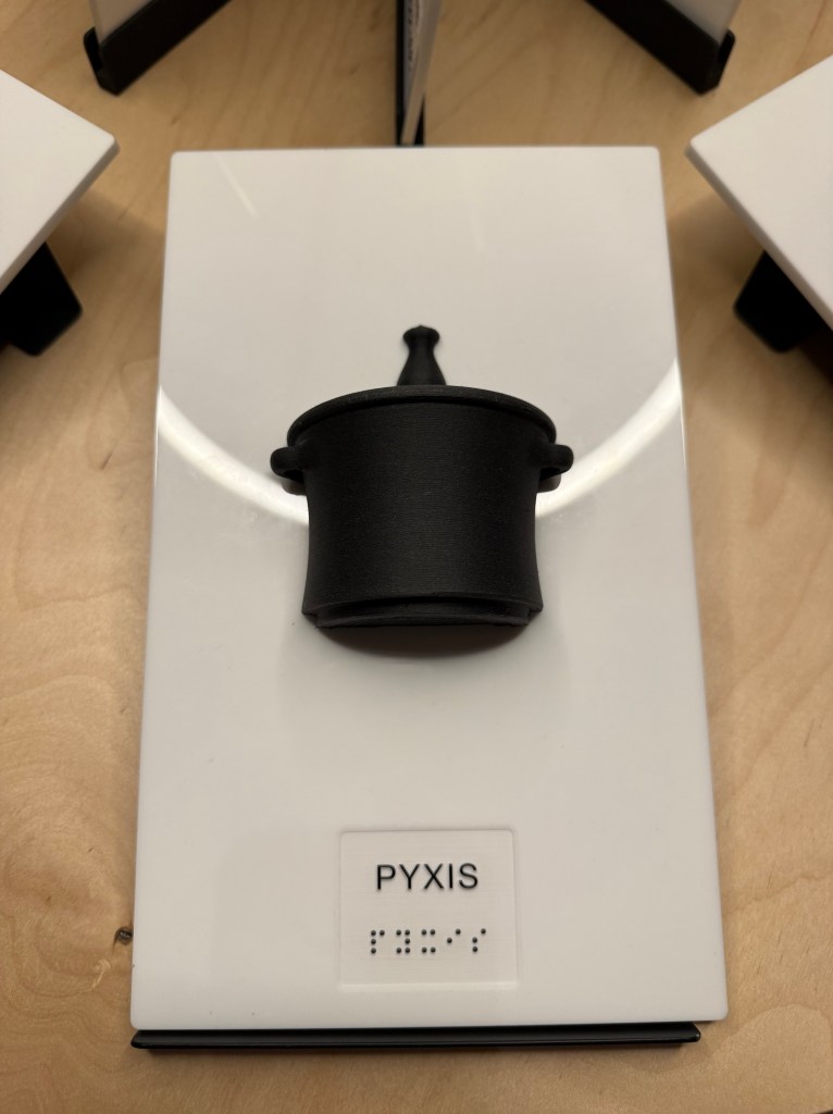 The pyxis was a box with a lid for storing ointments. I’ve got a similar pot that I was gifted: a ceramic soap dish with its own lid, made of beautiful blue and white Portuguese pottery.