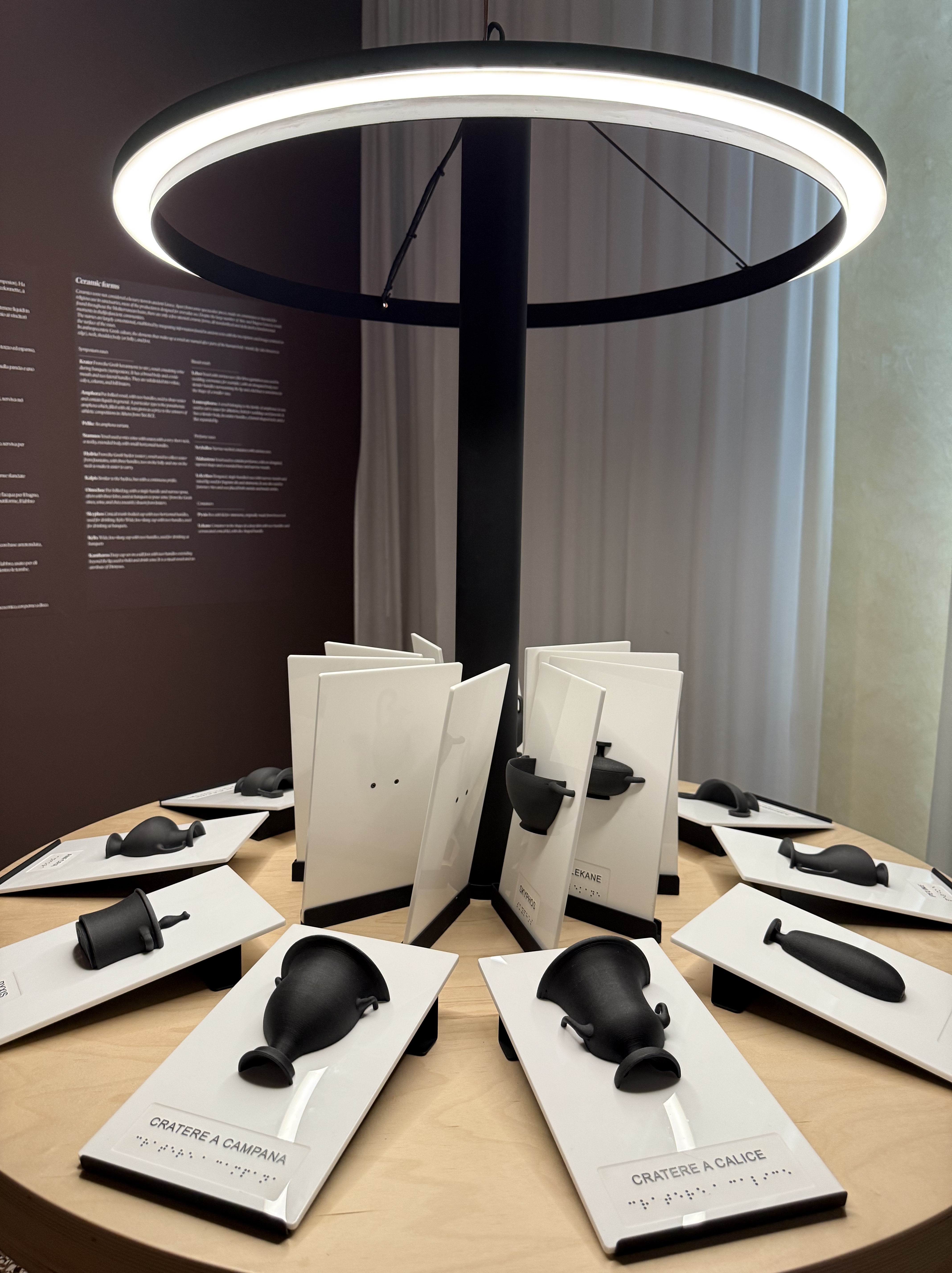 Museum nerds will love the hands on approach here. You can sift through the circular rack containing white blocks/stands with each vase represented in sharp 3D.