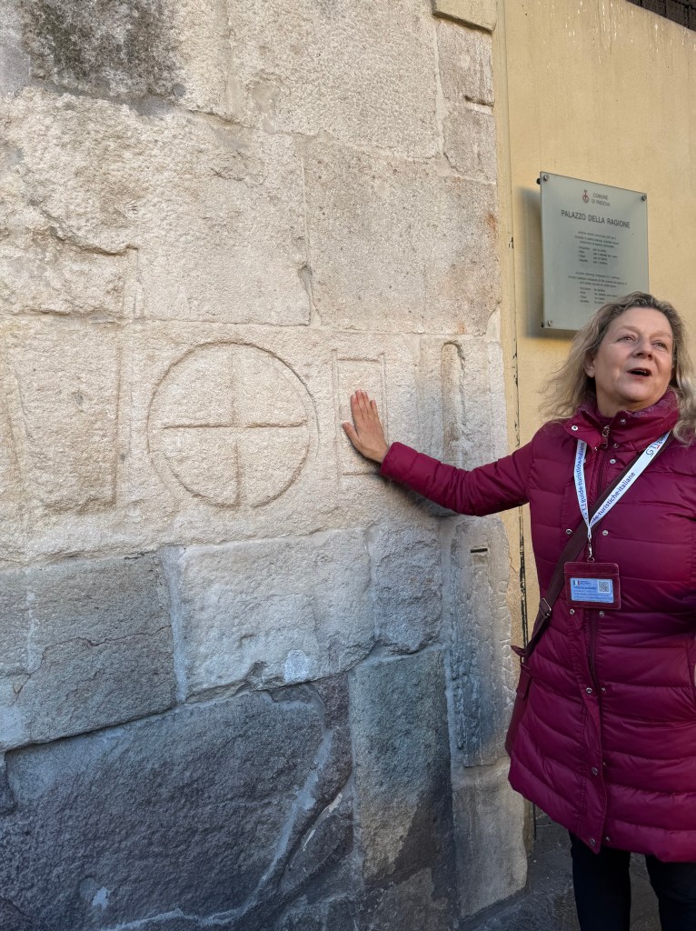 These symbols carved in stone are not decorative. They date back to medieval times and served to define the measurements of everyday goods like flour, grain, bricks and cloth and make sure that the customer was getting the right quantity of each product.